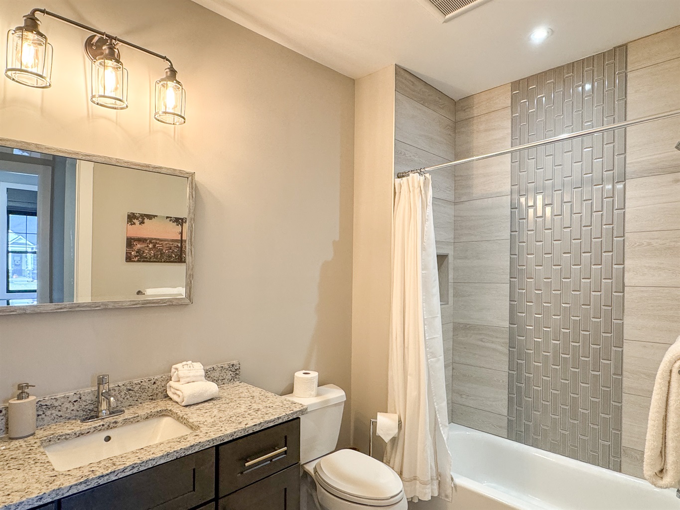 The fully equipped kitchen includes new appliances, quality cookware, and everything needed for casual meals or entertaining. Bedrooms are designed for rest and privacy, with plush bedding and generous storage. Spa-inspired bathrooms and new construction quality ensure a clean, fresh, and relaxing stay.