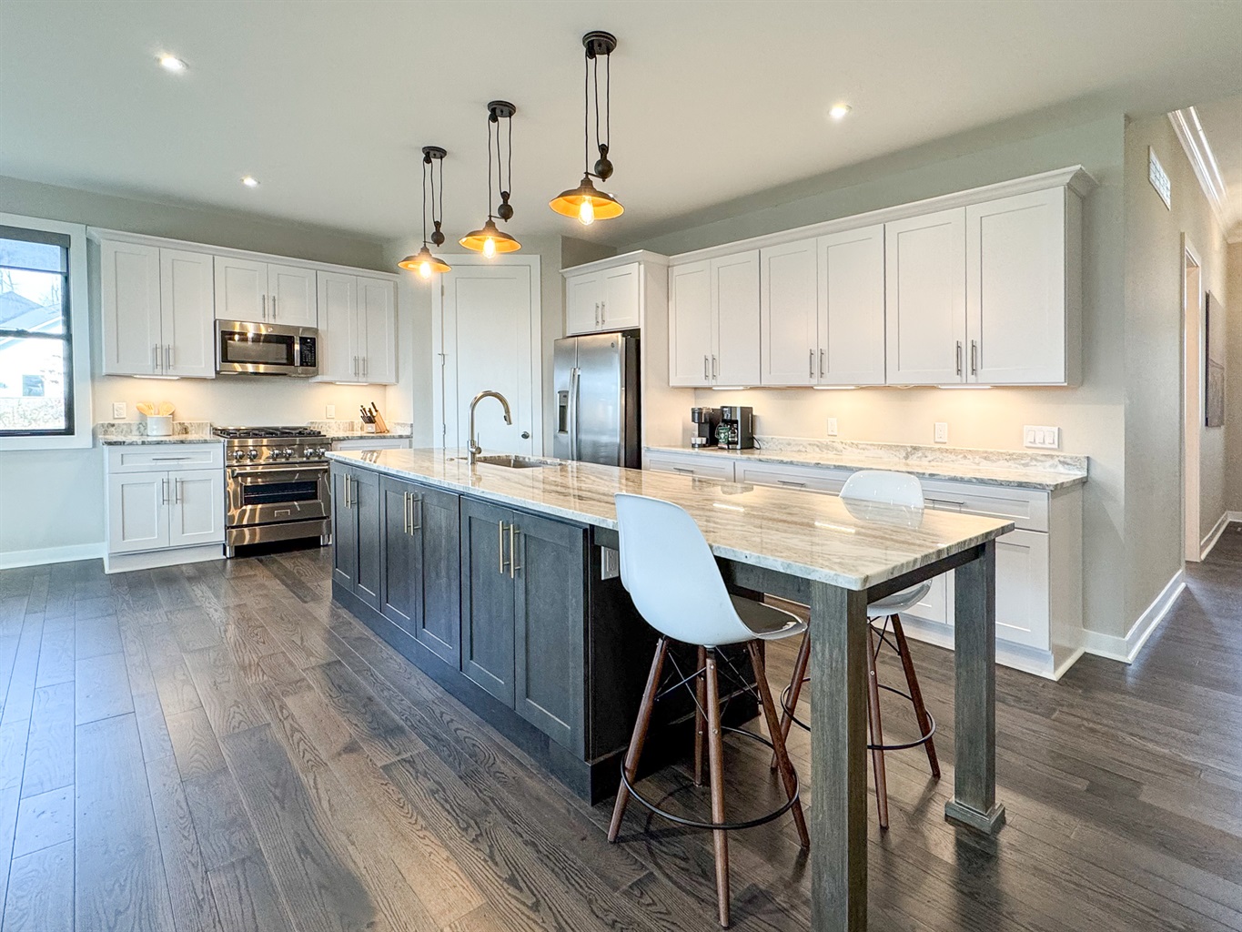 -Open concept living, kitchen, and dining areas