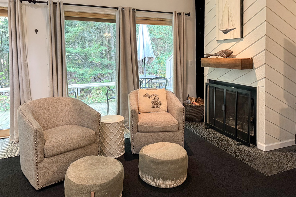Surrounded by mature trees and located just a short walk from the shores of Lake Michigan, this getaway offers a peaceful setting with easy access to the region’s top attractions.